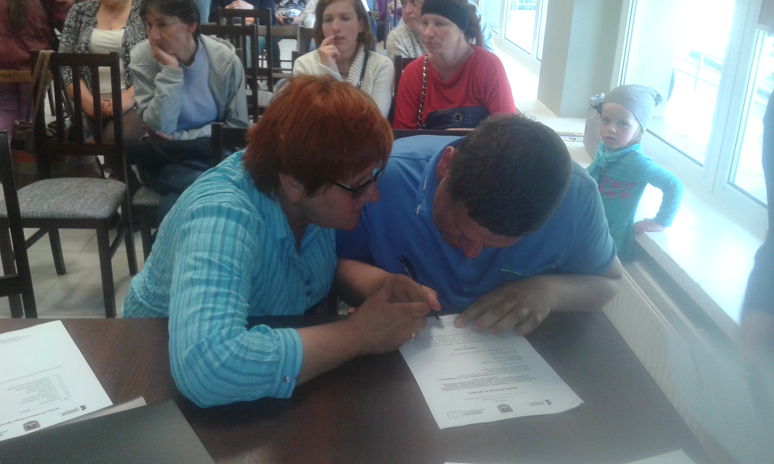 Podsumowaniem spotkania było podpisanie umów przez Wójta Gminy Cegłów z uczestnikami projektu na przekazanie sprzętu komputerowego.
